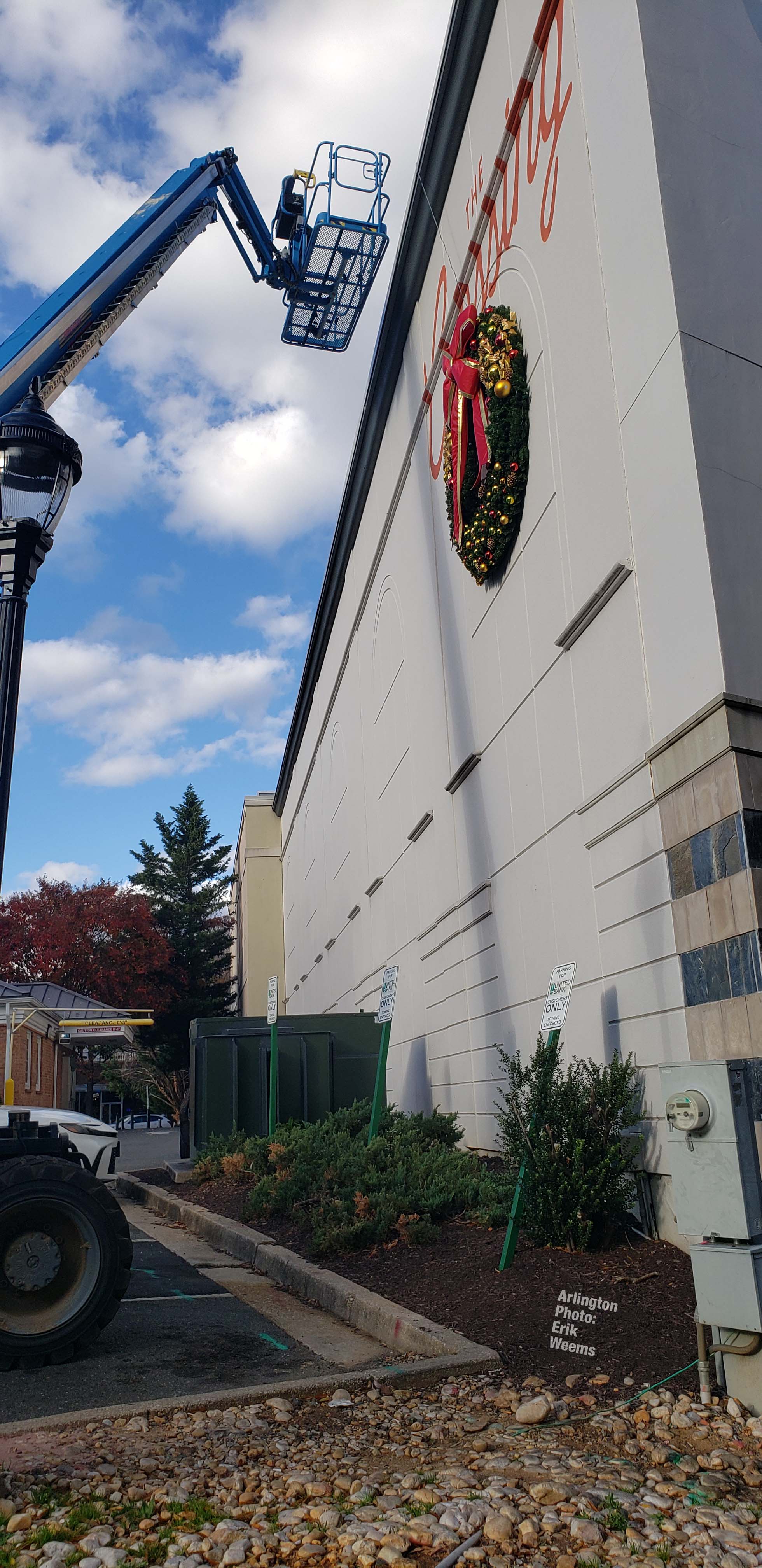 Hanging a wreath in Arlington, Virginia, for Christmas.